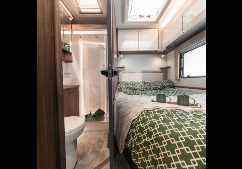 • Midi Heki rooflight with flyscreen and blind in lounge, with MPK VisionStar M pro (400x400) in bathroom and over fixed bed (Where applicable)