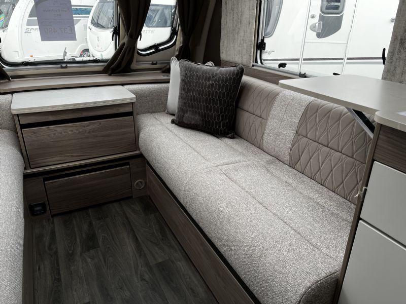 Discover the 2024 Swift Challenger 650 EXCLUSIVE: an opulent 4-berth caravan meticulously designed to elevate your travel experience. Boasting a Fixed Bed layout and Twin Axle construction, it's ideally suited for family escapades or intimate getaways with friends. Revel in contemporary conveniences such as wireless phone charging, seamless Swift Command Control functionality, and robust SMART Construction for lasting durability.